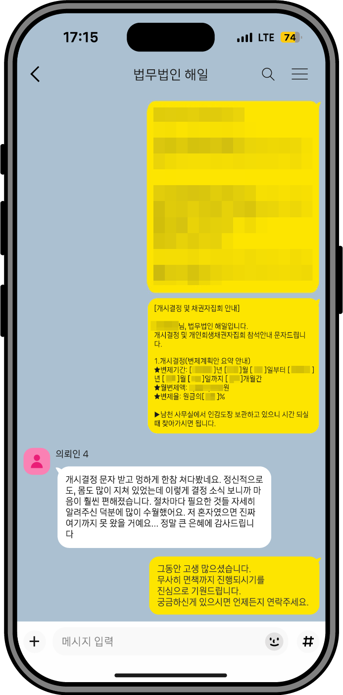회생 과정 전반에서 느끼신 변화와 만족도를 생생한 경험담으로 전달드립니다.