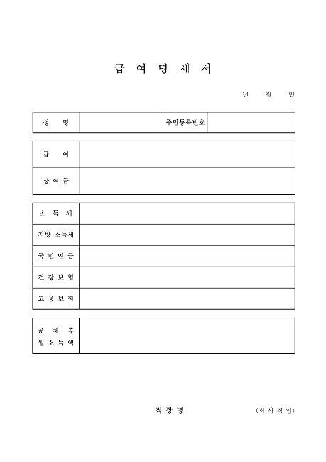 급여지급사실확인서, 현금지급확인서, 소득증명서 등